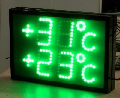 Kello-lämpötilanäyttöjämme on saatavilla pieninä ja suurina, sisätiloihin sekä ulkokäyttöön. Ne soveltuvat monenlaiseen täsmälliseen tiedottamiseen.